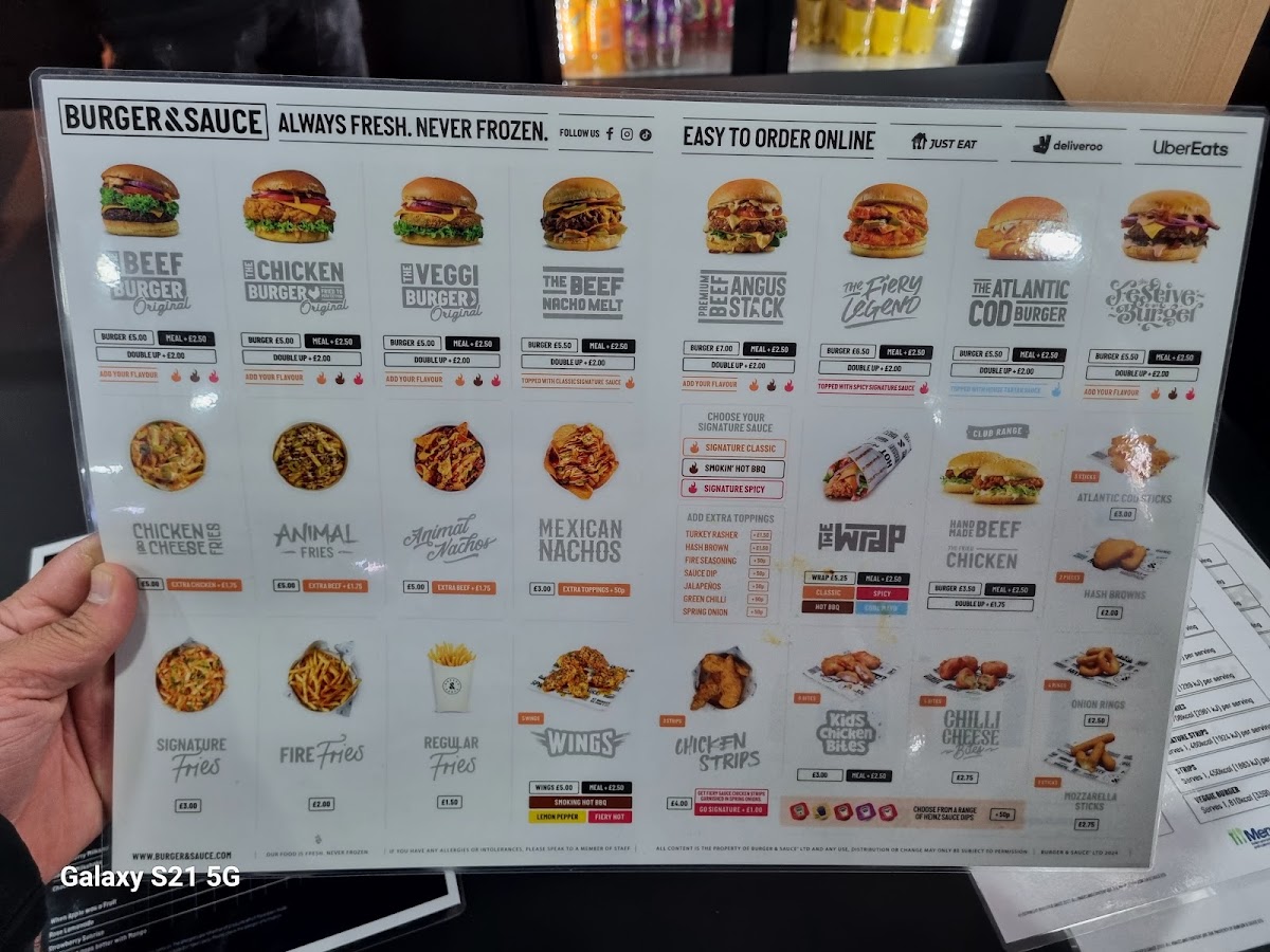 BURGER & SAUCE - Perry Barr Menu